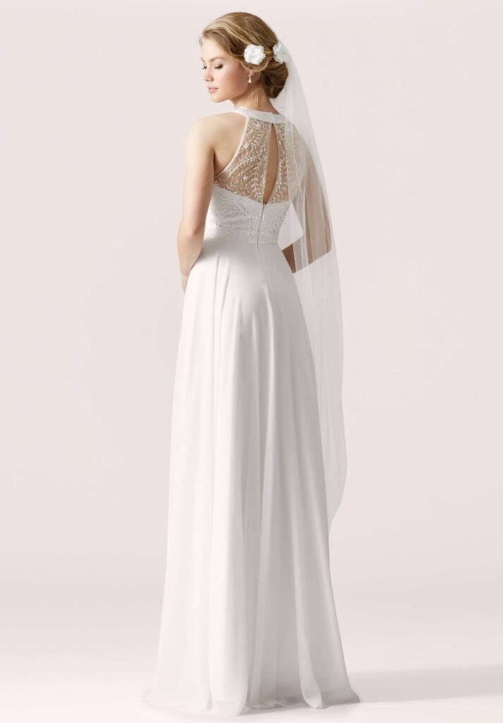 Her er brudekjolen, som der både er blikfang i og samtidlig utrolig elegant.