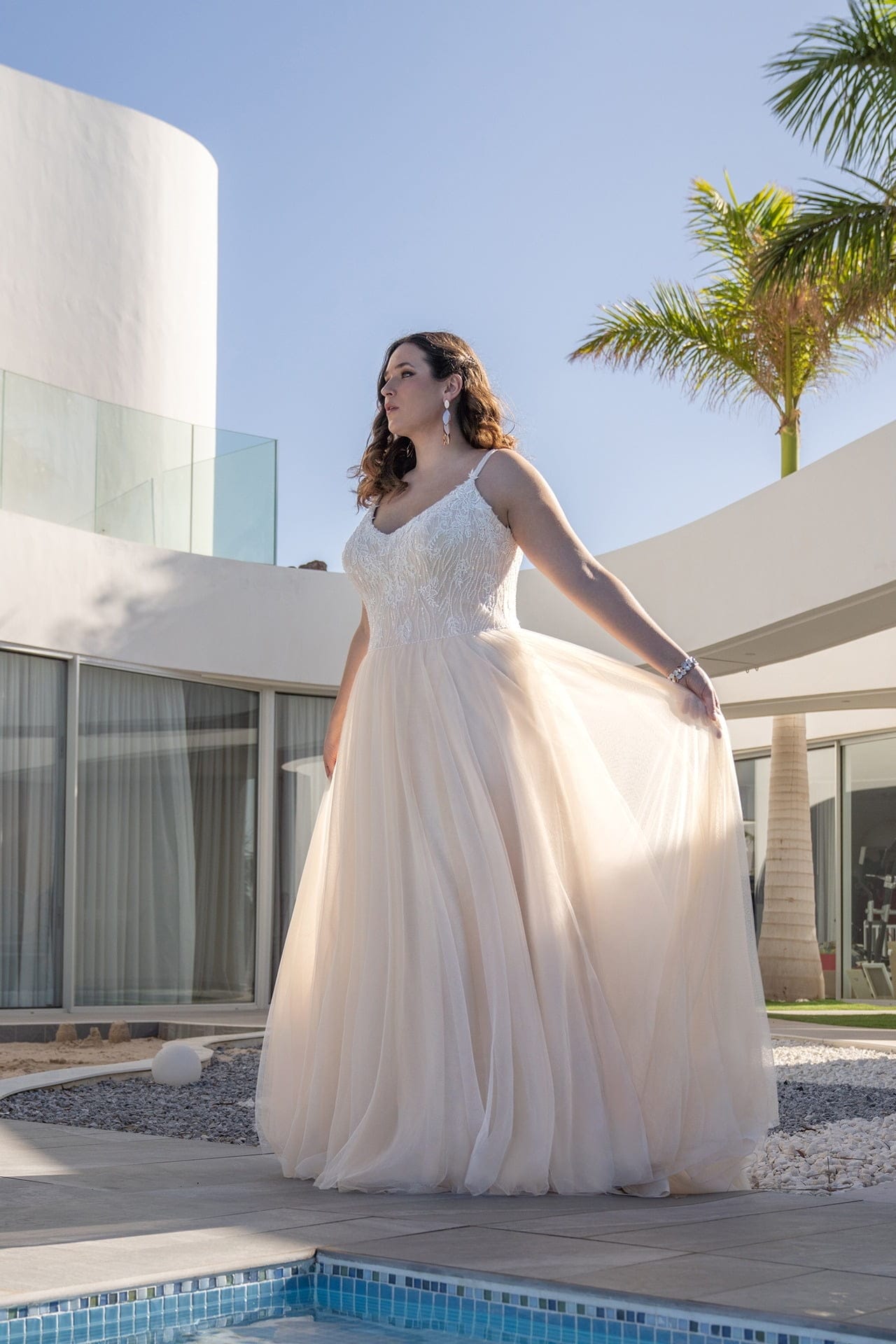 Sommer bryllup? Denne smukke brudekjole synes jeg er rigtig sommerlig, ikke sagt at den ikke kan bruges resten af året. Er du ligesom mig vild med blonder og tyl så kunne denne flotte plus size brudekjole godt lige være noget for dig. Tøv ikke med at booke en tid, så står jeg klar til at hjælpe dig med at finde DIN drømmekjole.